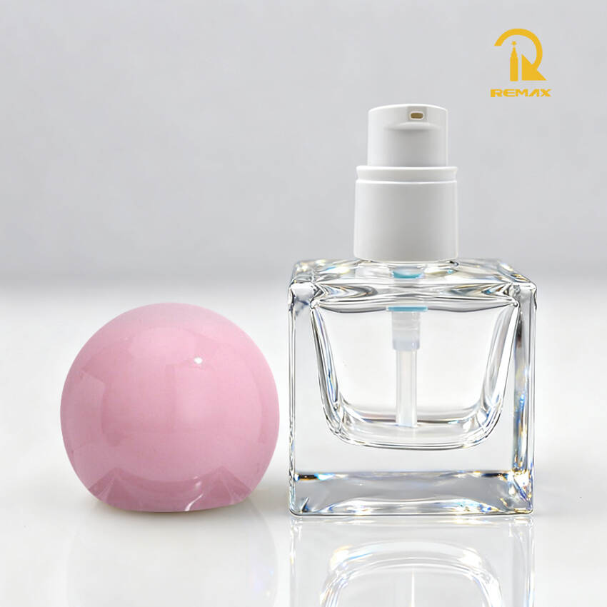 30ml Clear Square Glass Bottle for Lotion and Serum with Round Lid
