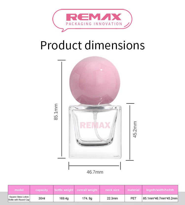 30ml Clear Square Glass Bottle for Lotion and Serum with Round Lid
