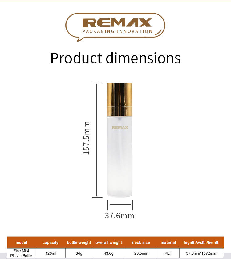 120ml Fine Mist Spray Bottle with Golden Cap Transparent PP Plastic Bottle